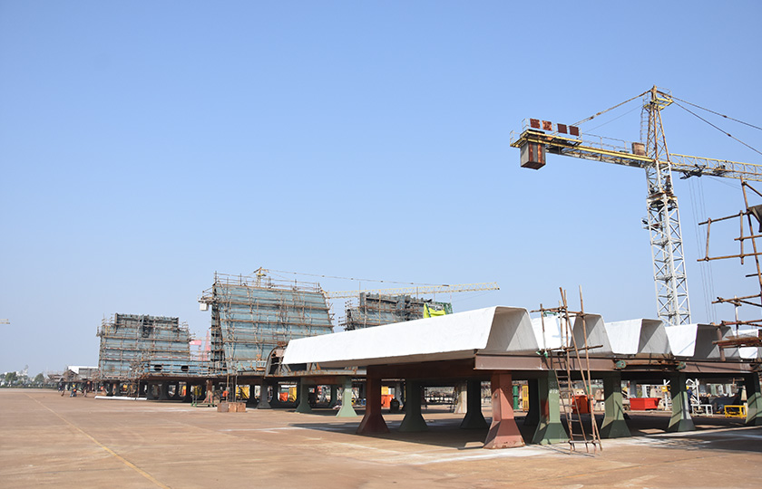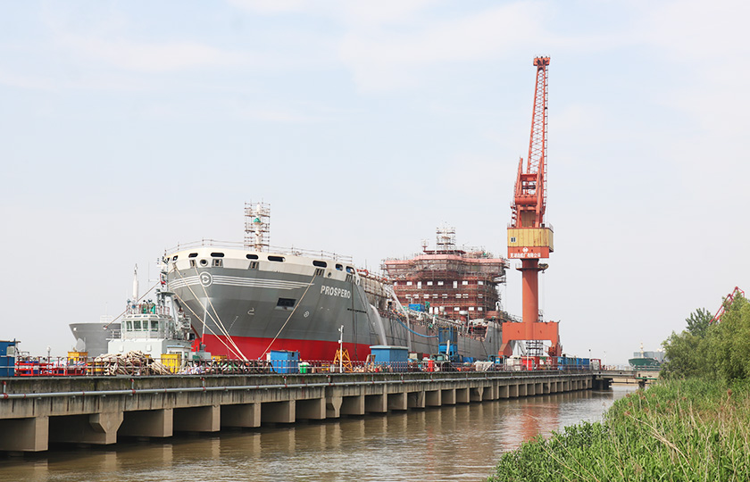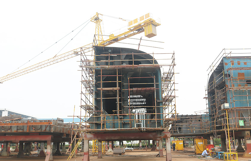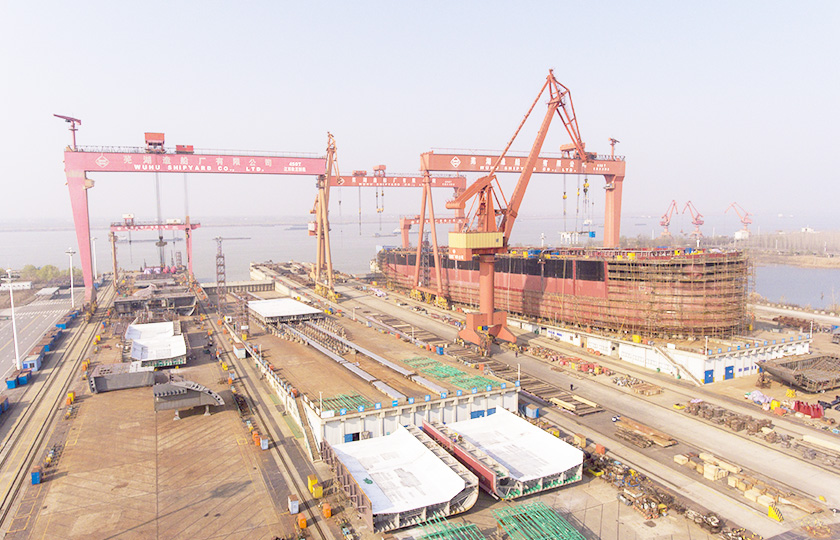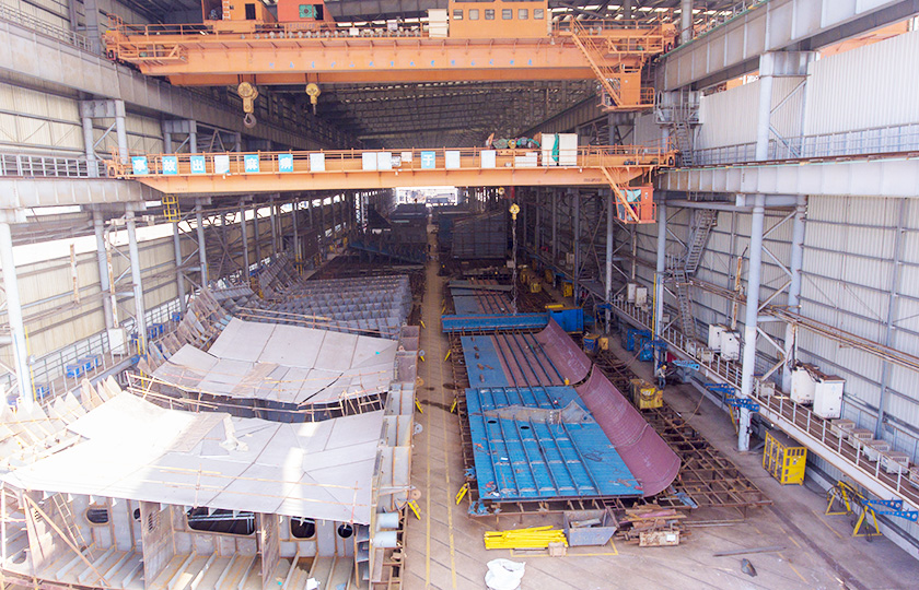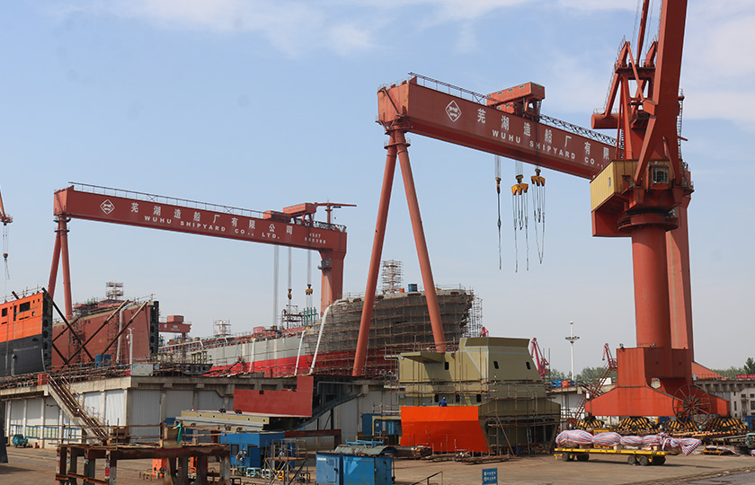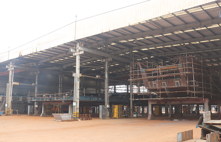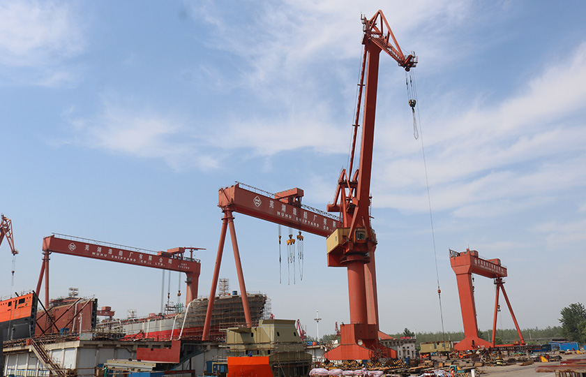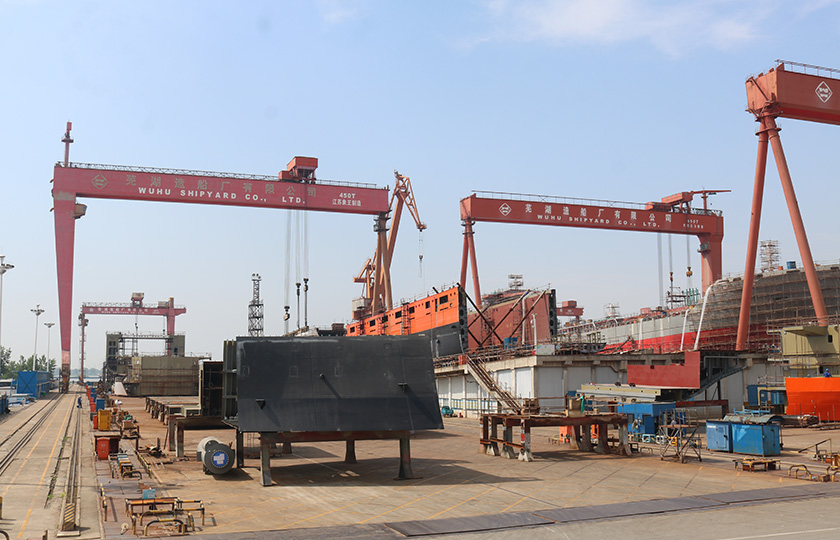 公司總投資達22億元,年造船載重噸位為80萬噸,一級I類造船企業(yè)。廠區(qū)總占地面積135.83萬平方米,岸線長度1355米,長達740米舾裝碼頭1座,擁有八萬噸級大型船臺兩座,擁有單臺起重能力達450t門吊3座,單臺起重能力32t塔吊3座。