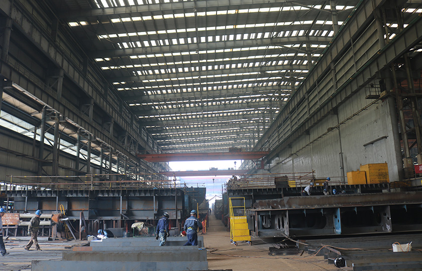 生產(chǎn)車間面積22.56萬平方米。公司注重制造車間硬件設備方面的投入。船體制造擁有一條先進的鋼材及型材預處理生產(chǎn)線,數(shù)臺數(shù)控等離子切割機、三輥對稱液壓卷板機、油壓機、1000T移動回轉(zhuǎn)壓頭框式液壓機、程控肋骨冷彎機。管舾裝制造設施擁有五軸數(shù)控相貫線切割機、數(shù)控相貫線切割機和數(shù)臺先進的切割和彎管設備。涂裝設施能同時完成3噴14涂分段涂裝能力。